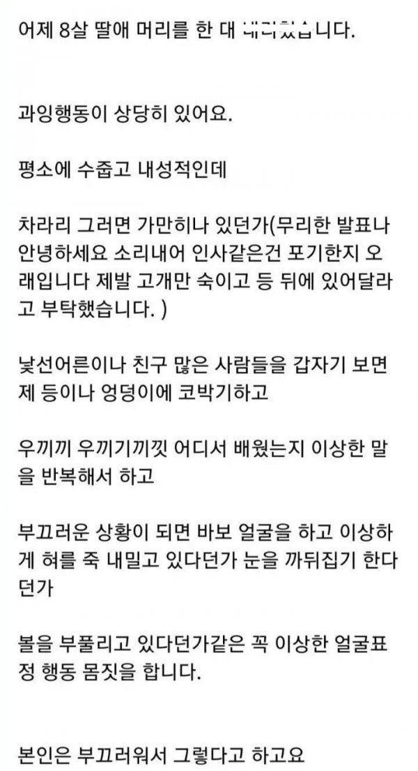 유머어제 8살 딸 머리를 내려ㅊ습니다위키뉴스 기자입력북마크공유가글자크기프린트댓글 어제 8살 딸 머리를 내려ㅊ습니다 아 .....위키뉴스 기자[email protected]카카오톡페이스북트위터밴드URL복사