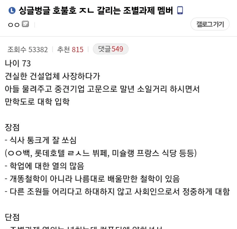 유머호불호 갈린다는 조별과제 멤버위키뉴스 기자입력북마크공유가글자크기프린트댓글호불호 갈린다는 조별과제 멤버 위키뉴스 기자[email protected]카카오톡페이스북트위터밴드URL복사