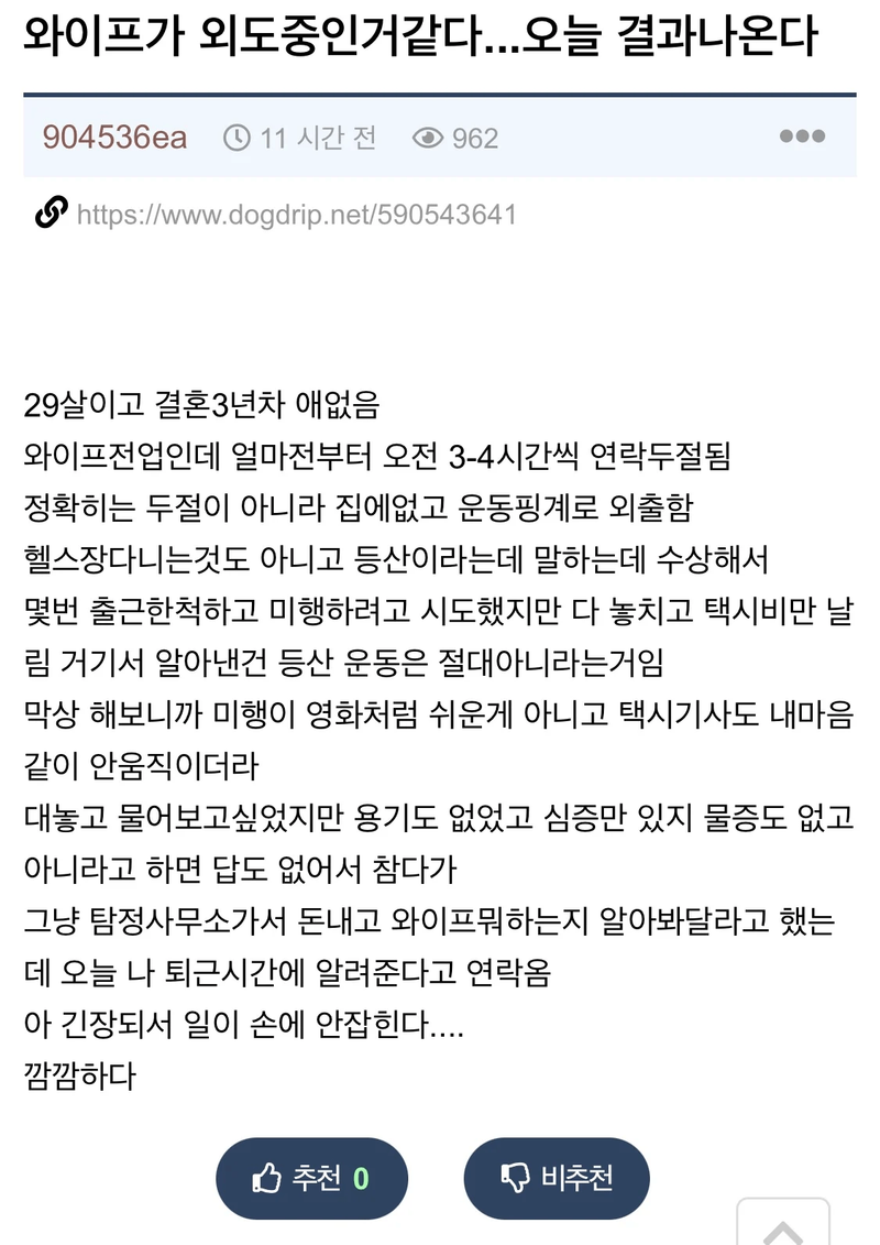 유머와이프가 외ㄷ 중인 것 같다... 오늘 결과 나온다위키뉴스 기자입력북마크공유가글자크기프린트댓글와이프가 외ㄷ 중인 것 같다... 오늘 결과 나온다 위키뉴스 기자[email protected]카카오톡페이스북트위터밴드URL복사