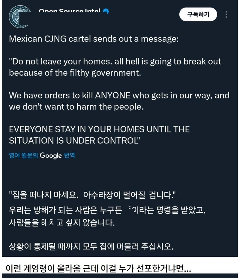리와인드뉴스멕시코 계엄령 터짐 ㄷㄷㄷ위키뉴스 기자입력북마크공유가글자크기프린트댓글 멕시코 계엄령 터짐 ㄷㄷㄷ 이유는 마ㅇ카르텔 보스가 살해당해서 카르텔이 계엄령선포함ㄷㄷㄷ위키뉴스 기자[email protected]카카오톡페이스북트위터밴드URL복사
