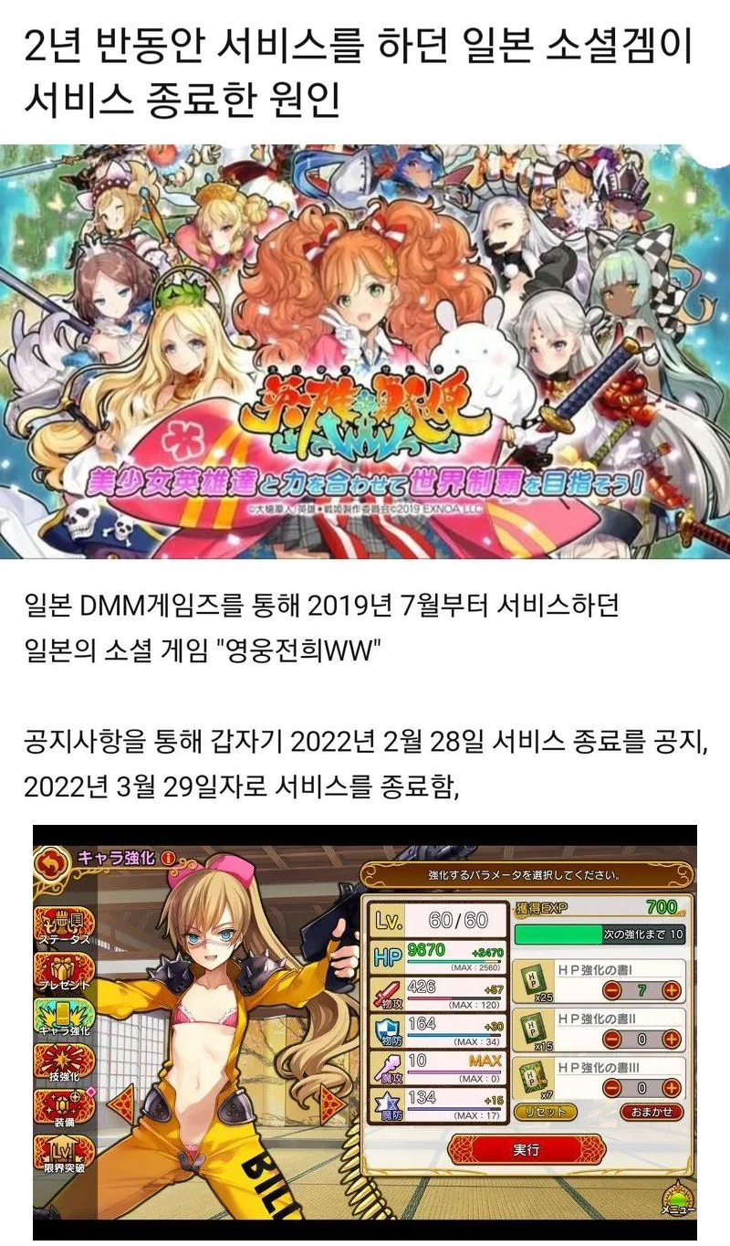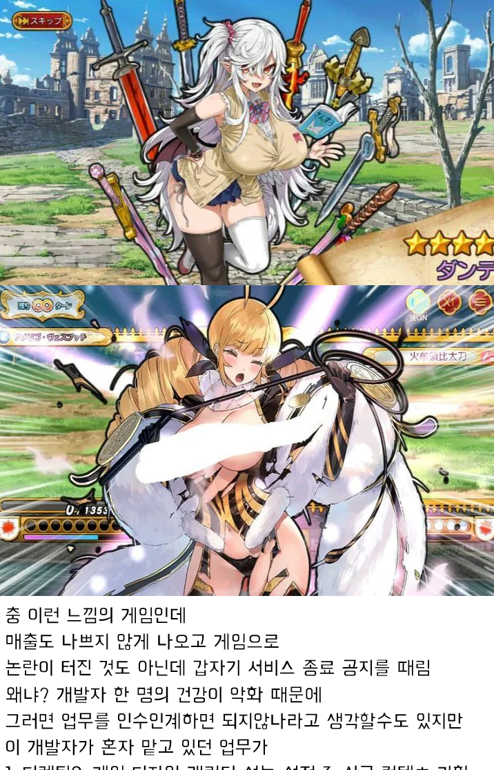 매출도 나쁘지 않게 나오고 게임으로 논란이 터진 것도 아닌데 갑자기 서비스 종료 공지를 때림