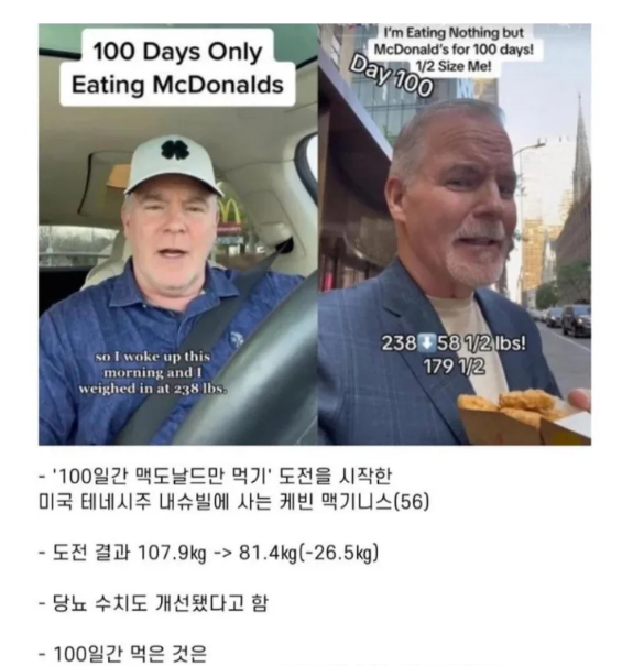 리와인드뉴스100일 동안 맥도날드 음식만 먹은 결과 ㄷㄷㄷㄷㄷㄷ위키뉴스 기자입력북마크공유가글자크기프린트댓글 100일 동안 맥도날드 음식만 먹은 결과 ㄷㄷㄷㄷㄷㄷ 위키뉴스 기자[email protected]카카오톡페이스북트위터밴드URL복사