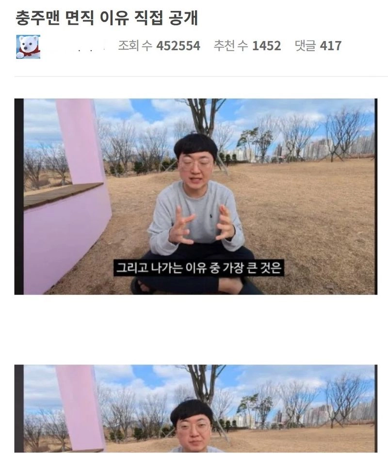 리와인드뉴스충주맨 면직 이유 직접 공개위키뉴스 기자입력북마크공유가글자크기프린트댓글 충주맨 면직 이유 직접 공개 위키뉴스 기자[email protected]카카오톡페이스북트위터밴드URL복사