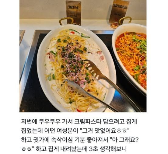리와인드뉴스쿠우쿠우 가서 크림파스타 담으려고 집게 집었는데위키뉴스 기자입력북마크공유가글자크기프린트댓글 쿠우쿠우 가서 크림파스타 담으려고 집게 집었는데 위키뉴스 기자[email protected]카카오톡페이스북트위터밴드URL복사