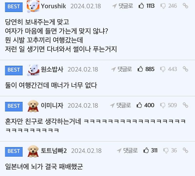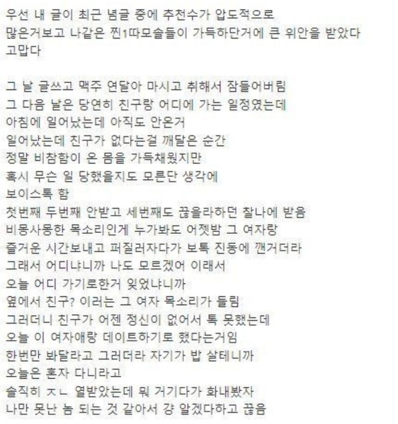 유머잘생긴 친구랑 일본여행 갔다가 생긴 일.. +후기위키뉴스 기자입력북마크공유가글자크기프린트댓글잘생긴 친구랑 여행가서 버려진 썰 +후기 위키뉴스 기자[email protected]카카오톡페이스북트위터밴드URL복사