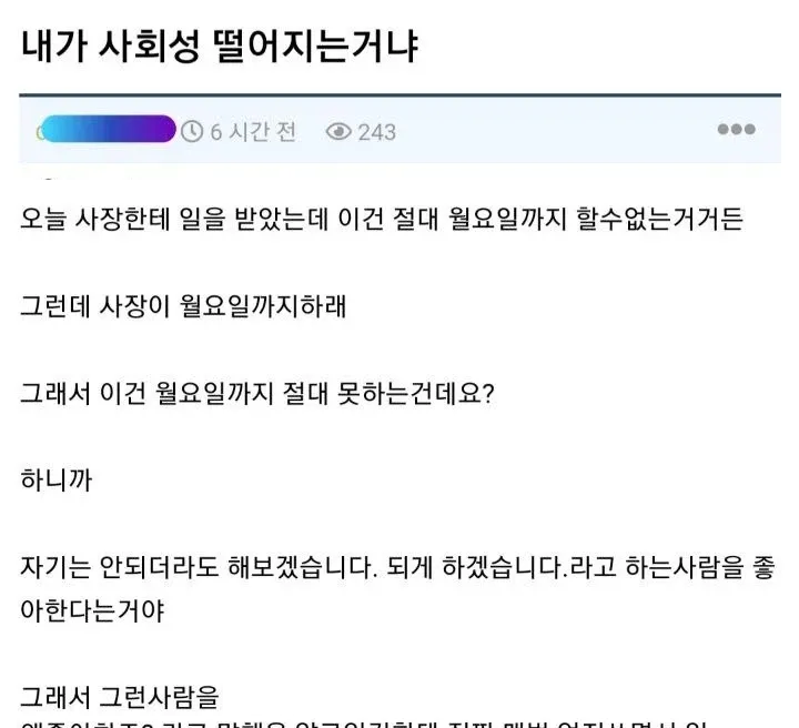 유머내가 사회성 떨어지는거냐?위키뉴스 기자입력북마크공유가글자크기프린트댓글내가 사회성 떨어지는거냐?저거 개공감이네 ㅋㅋ사회초년생들한테 제일 빡쌔게 주입교육시키는 말중에 하나..위키뉴스 기자[email protected]카카오톡페이스북트위터밴드URL복사