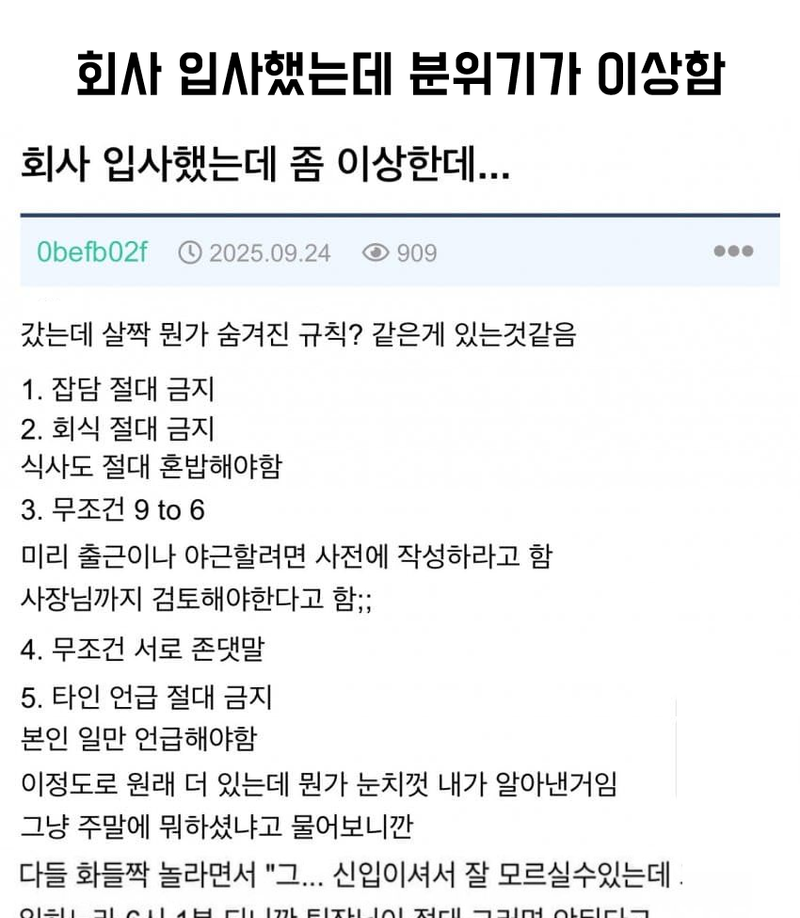 유머회사 입사했는데 분위기가 이상함위키뉴스 기자입력북마크공유가글자크기프린트댓글회사 입사했는데 분위기가 이상함위키뉴스 기자[email protected]카카오톡페이스북트위터밴드URL복사