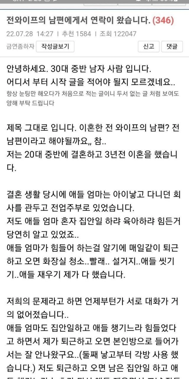 유머전 와이프 남편에게서 연락이 왔습니다위키뉴스 기자입력북마크공유가글자크기프린트댓글전 와이프 남편에게서 연락이 왔습니다 위키뉴스 기자[email protected]카카오톡페이스북트위터밴드URL복사