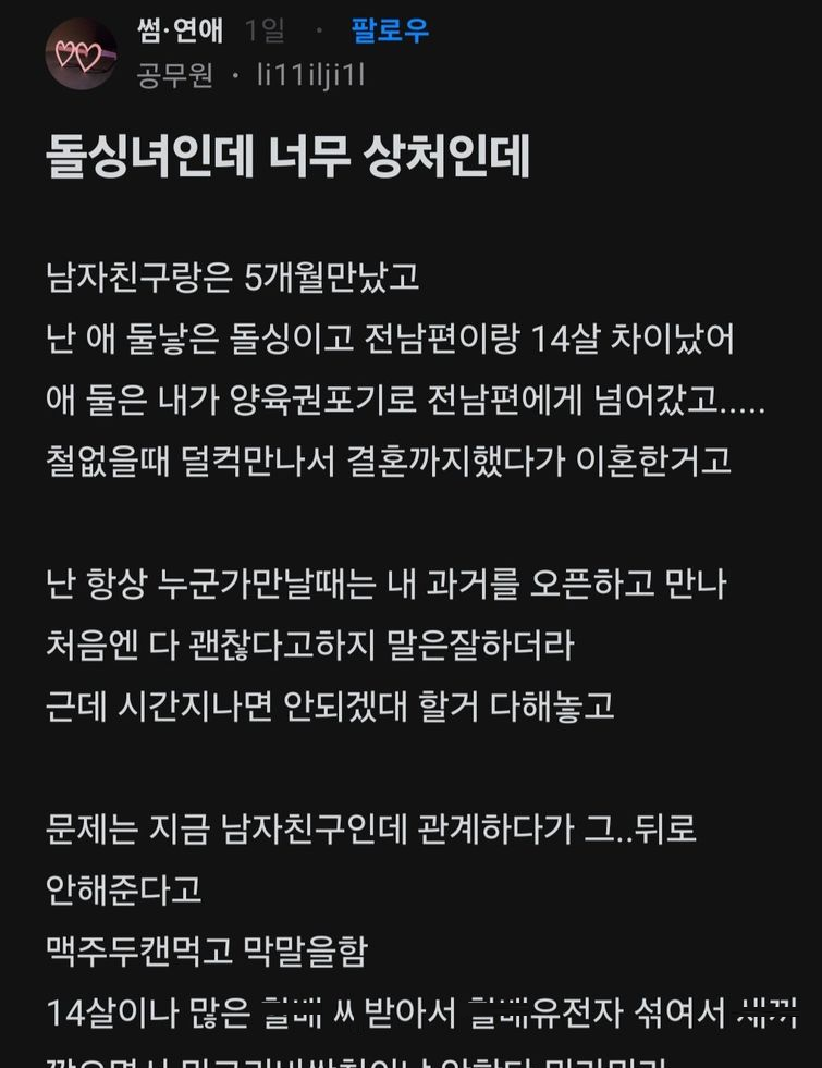유머돌싱녀에게 깊은상처를 준 남친위키뉴스 기자입력북마크공유가글자크기프린트댓글 돌싱녀에게 깊은상처를 준 남친 씨발 ㅋㅋㅋ 위키뉴스 기자[email protected]카카오톡페이스북트위터밴드URL복사