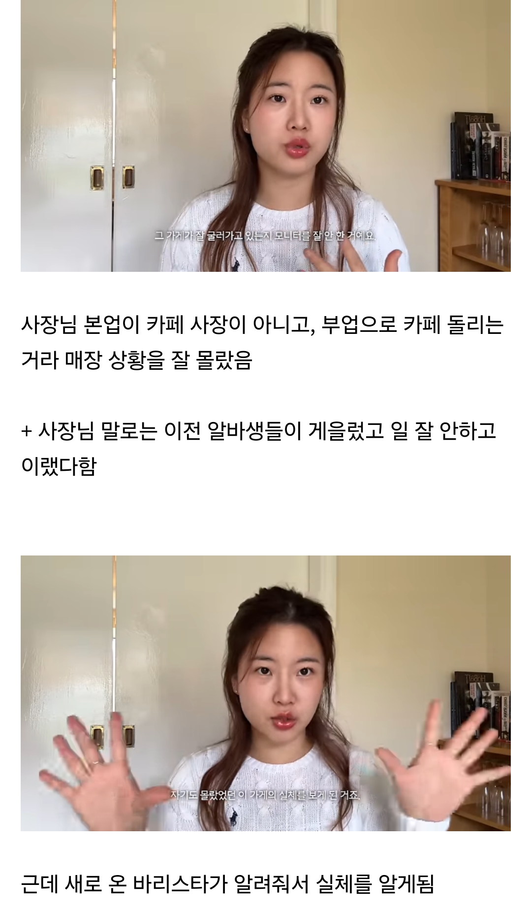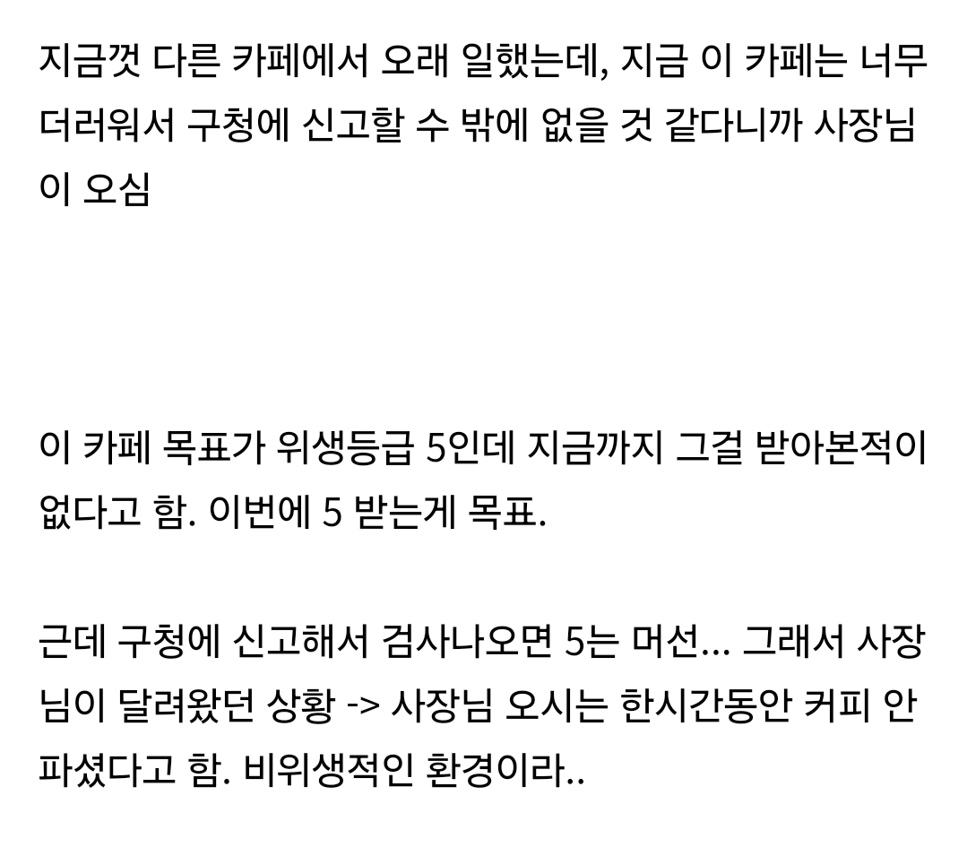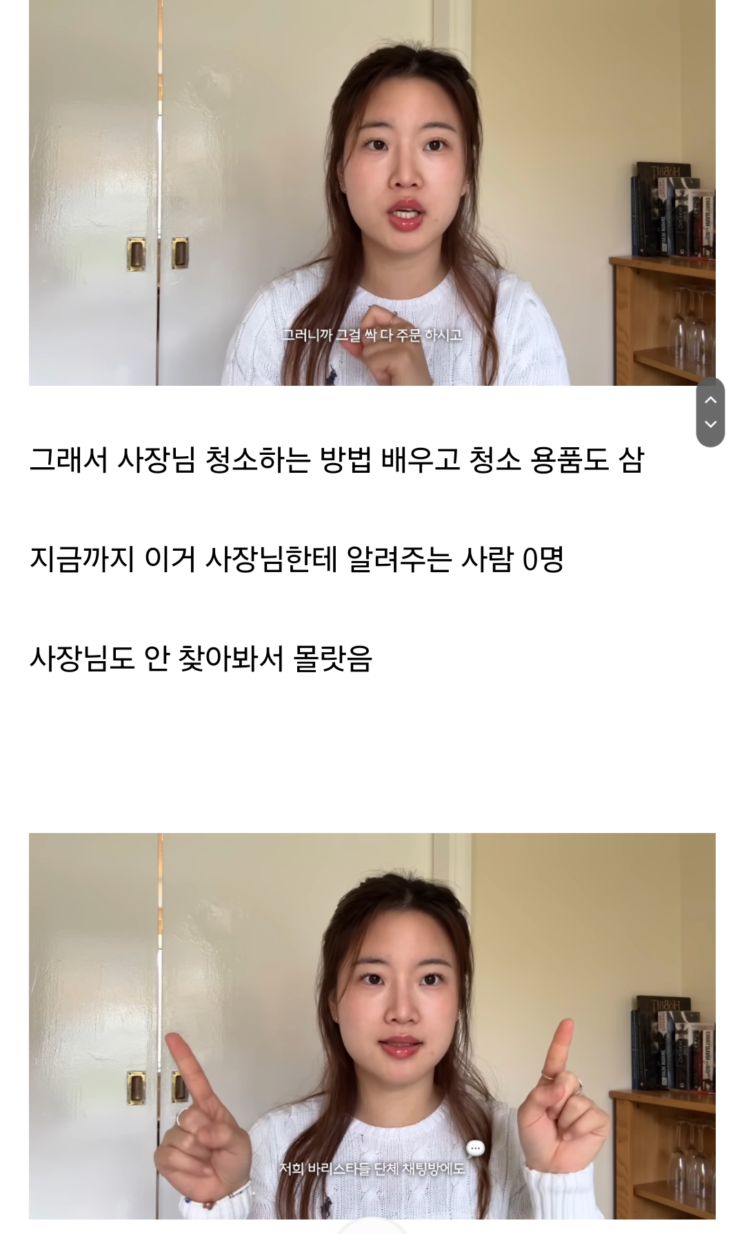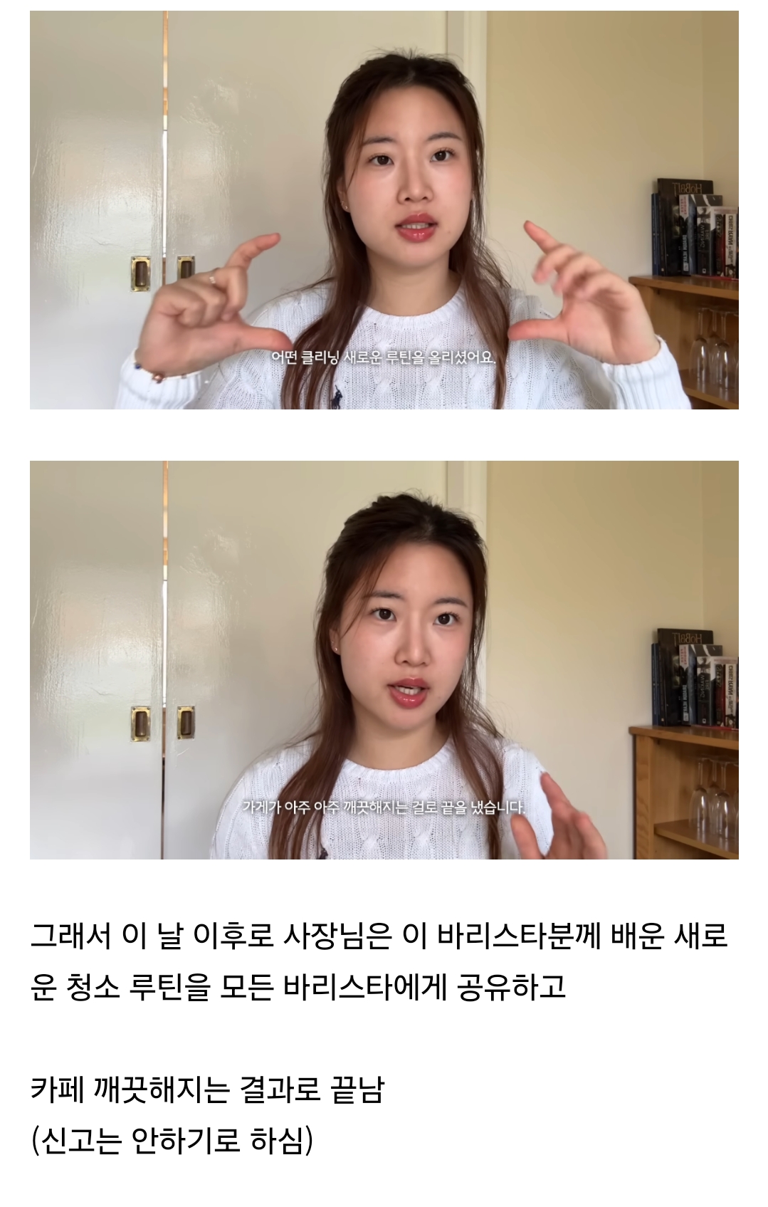 유머새로 일하게 된 카페가 너무 더러워서 사장님에게 말한 바리스타(+후기)위키뉴스 기자입력북마크공유가글자크기프린트댓글새로 일하게 된 카페가 너무 더러워서 사장님에게 말한 바리스타(+후기) . . . 출처위키뉴스 기자[email protected]카카오톡페이스북트위터밴드URL복사