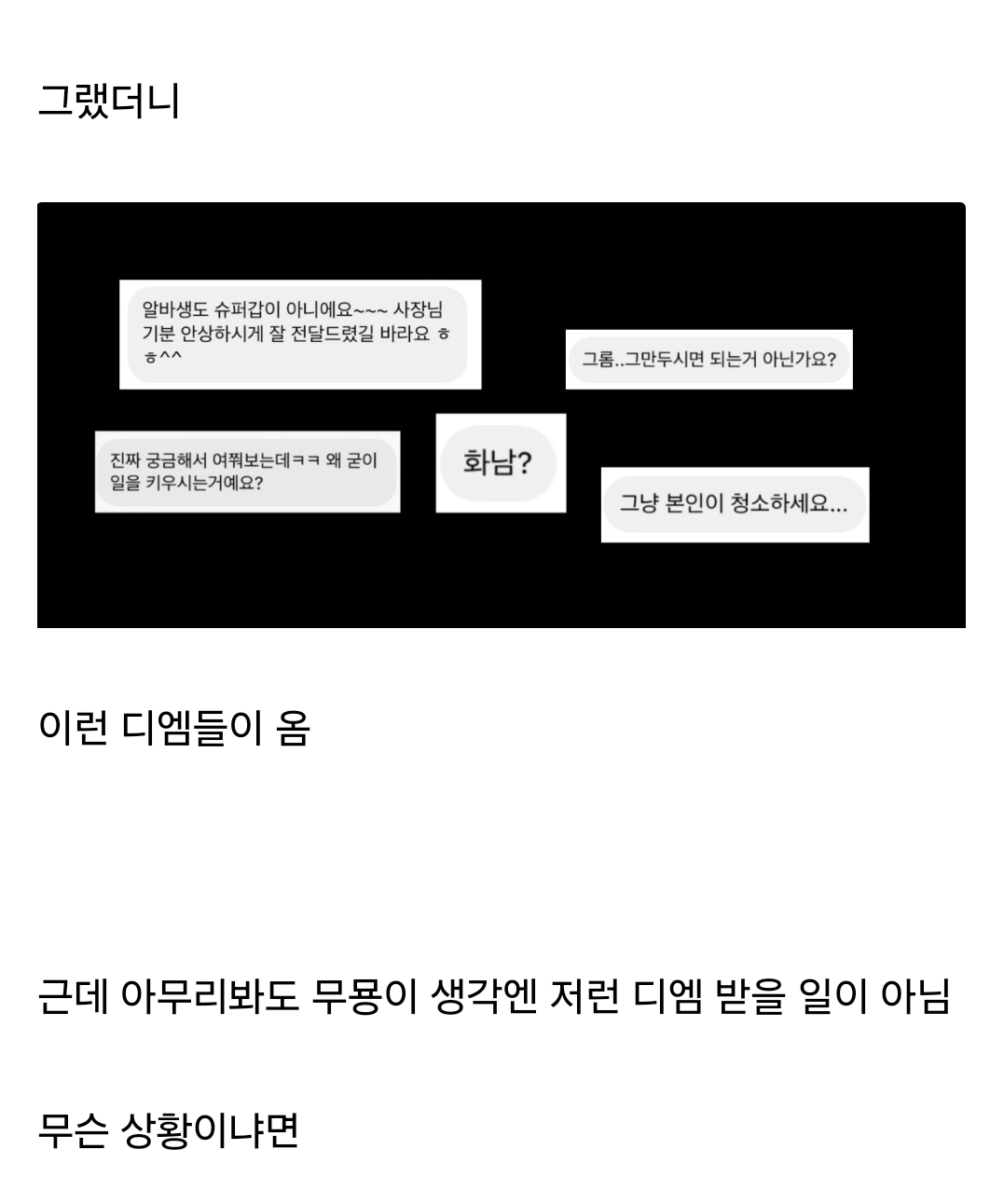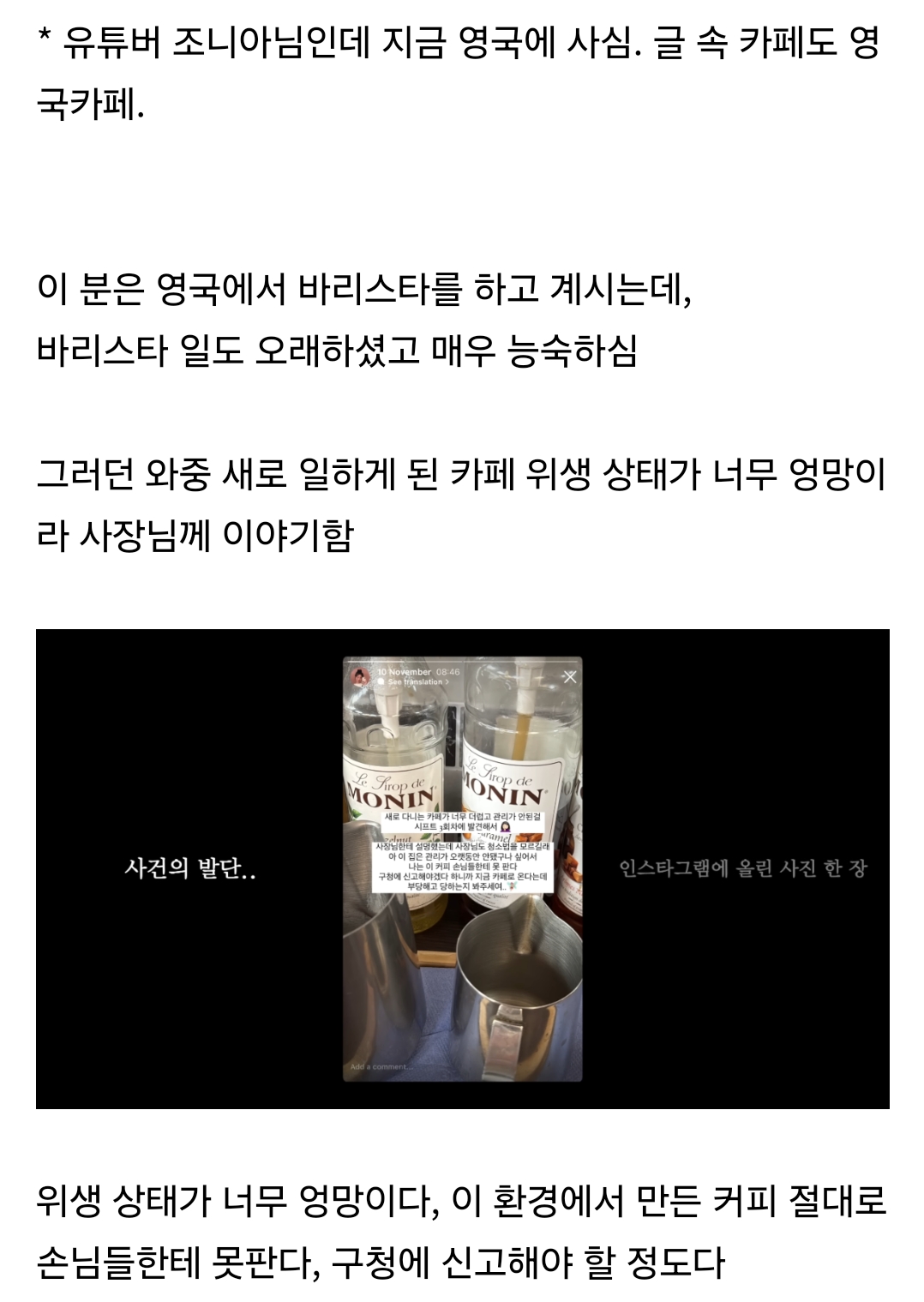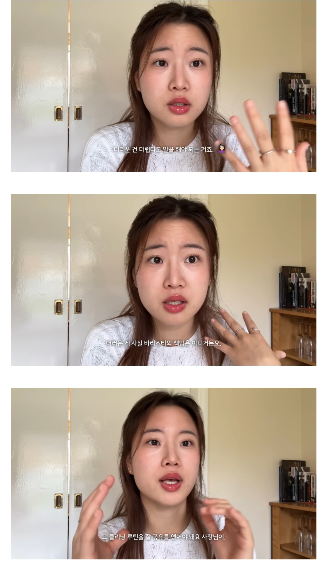 유머새로 일하게 된 카페가 너무 더러워서 사장님에게 말한 바리스타(+후기)위키뉴스 기자입력북마크공유가글자크기프린트댓글새로 일하게 된 카페가 너무 더러워서 사장님에게 말한 바리스타(+후기) . . . 출처위키뉴스 기자[email protected]카카오톡페이스북트위터밴드URL복사