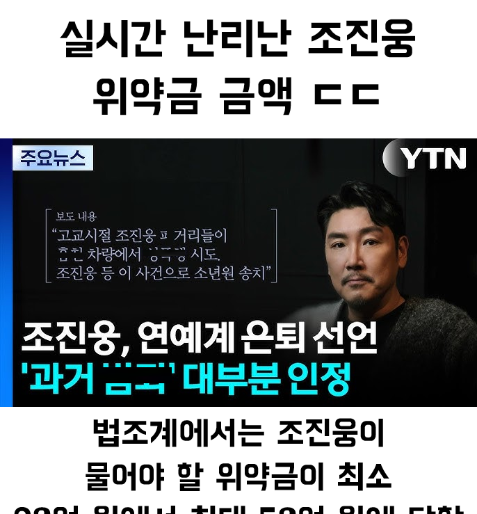 실시간 난리난 조진웅 위약금 금액 ㄷㄷ