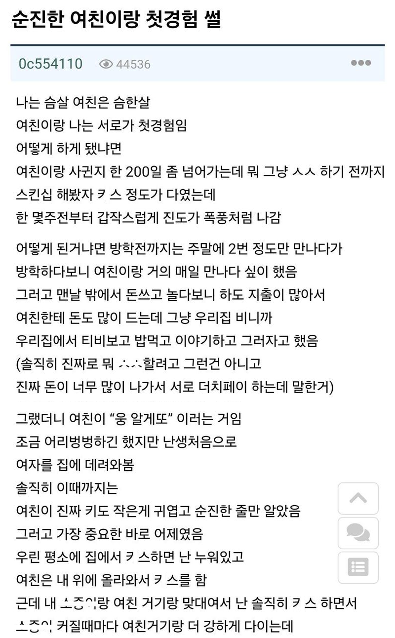 순진한 여친이랑 첫경험한썰