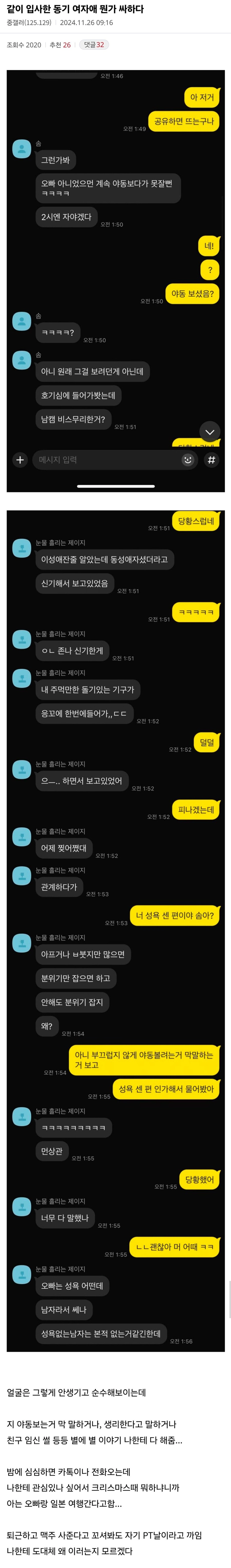 유머같이 입사한 여자 동기가 싸하다는 사람....위키뉴스 기자입력북마크공유가글자크기프린트댓글같이 입사한 여자 동기가 싸하다는 사람. 위키뉴스 기자[email protected]카카오톡페이스북트위터밴드URL복사