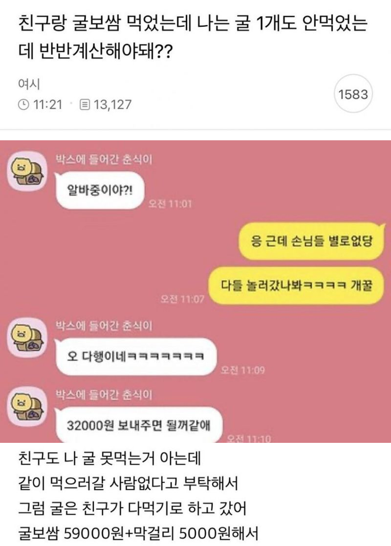 친구랑 굴보쌈 반반계산 논란