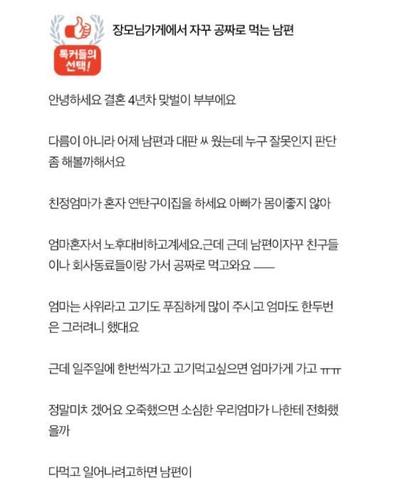 리와인드뉴스장모님 가게에서 자꾸 공짜로 먹는 남편..위키뉴스 기자입력북마크공유가글자크기프린트댓글 장모님 가게에서 자꾸 공짜로 먹는 남편.. 이런 경우는 어떡해야됨? ㄷㄷ 위키뉴스 기자[email protected]카카오톡페이스북트위터밴드URL복사