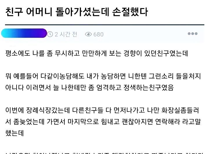 유머친구 어머니 돌아가셨는데 손절했다위키뉴스 기자입력북마크공유가글자크기프린트댓글친구 어머니 돌아가셨는데 손절했다 위키뉴스 기자[email protected]카카오톡페이스북트위터밴드URL복사