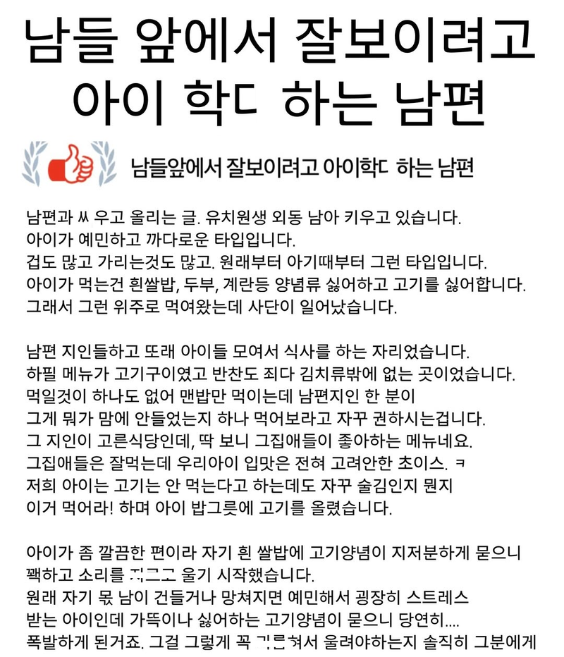 유머남들 앞에서 잘보이려고 아이 학ㄷ하는 남편위키뉴스 기자입력북마크공유가글자크기프린트댓글남들 앞에서 잘보이려고 아이 학대하는 남편 위키뉴스 기자[email protected]카카오톡페이스북트위터밴드URL복사