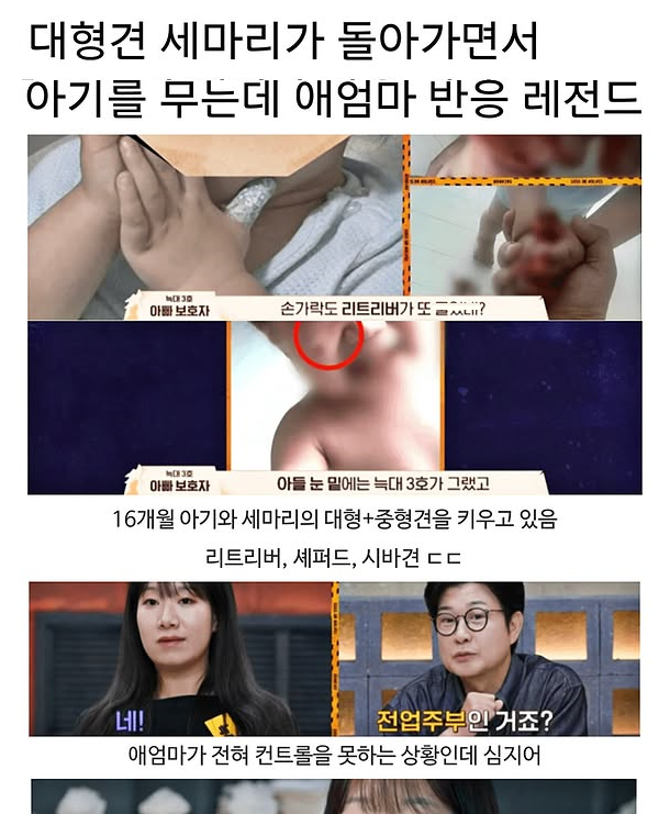 아기보다 반려견을 우선시하는 보호자의 태도가 시청자들에게 충격을 안겼다.