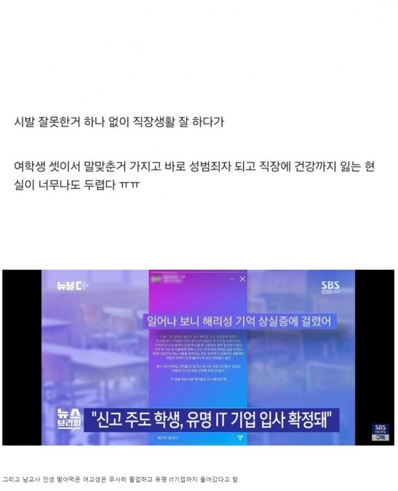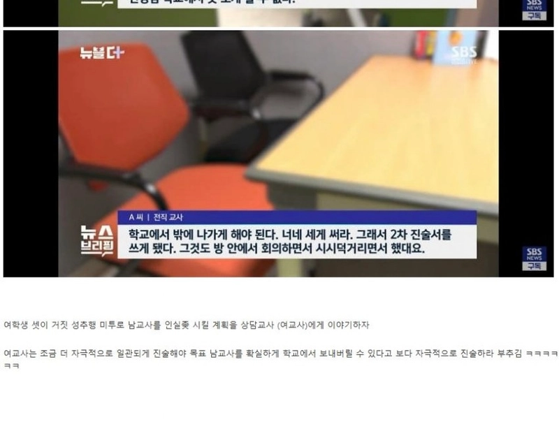 유머여고생+여교사 무고로 인생 망한 남교사 사건 근황위키뉴스 기자입력북마크공유가글자크기프린트댓글여고생 + 여교사 무고로 인생 망한 남교사 위키뉴스 기자[email protected]카카오톡페이스북트위터밴드URL복사