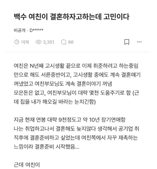리와인드뉴스10년 사귄 여친이 결혼 하자는데위키뉴스 기자입력북마크공유가글자크기프린트댓글 10년 사귄 여친이 결혼 하자는데 위키뉴스 기자[email protected]카카오톡페이스북트위터밴드URL복사