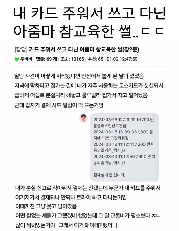 유머내 카드 주워서 쓰고 다닌 아줌마 참교육한 썰위키뉴스 기자입력북마크공유가글자크기프린트댓글내 카드 주워서 쓰고 다닌 아줌마 참교육한 썰 위키뉴스 기자[email protected]카카오톡페이스북트위터밴드URL복사