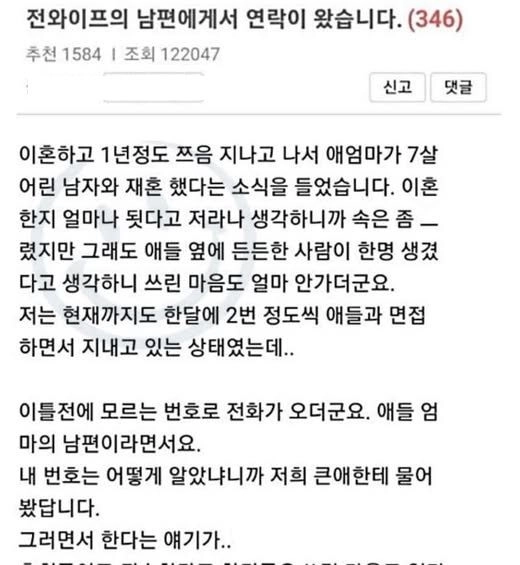 리와인드뉴스ㅇ혼한 와이프 남편에게서 이틀전에 연락이 왔습니다위키뉴스 기자입력북마크공유가글자크기프린트댓글 ㅇ혼한 와이프 남편에게서 이틀전에 연락이 왔습니다 위키뉴스 기자[email protected]카카오톡페이스북트위터밴드URL복사