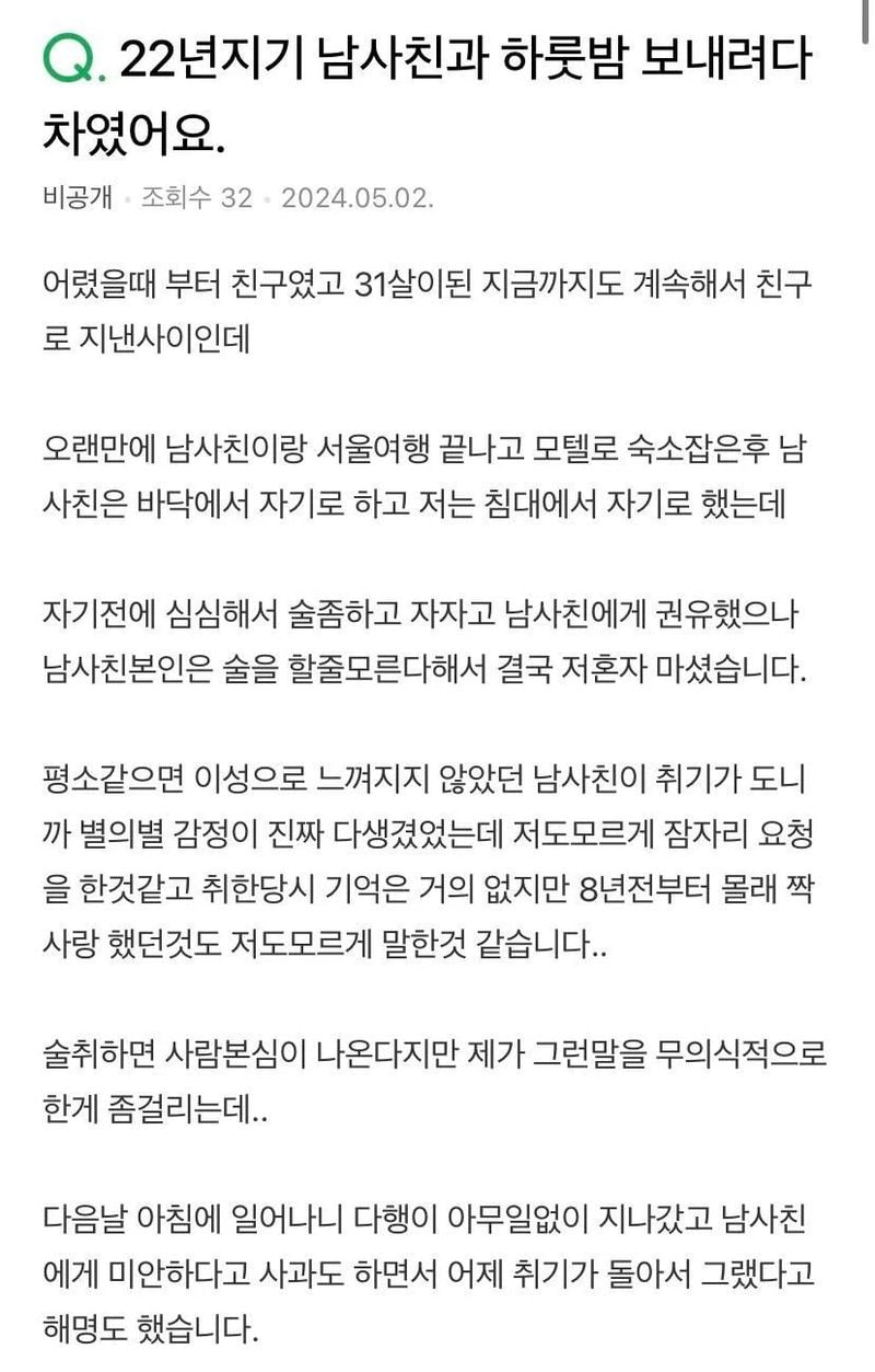 22년된 남사친과 ㅅㅅ하려다 차였어요....