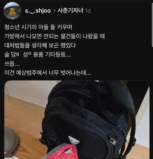 리와인드뉴스청소년 아들 가방에서 나오면 안되는물건 ㄷㄷ위키뉴스 기자입력북마크공유가글자크기프린트댓글 청소년 아들 가방에서 나오면 안되는물건 ㄷㄷ 위키뉴스 기자[email protected]카카오톡페이스북트위터밴드URL복사