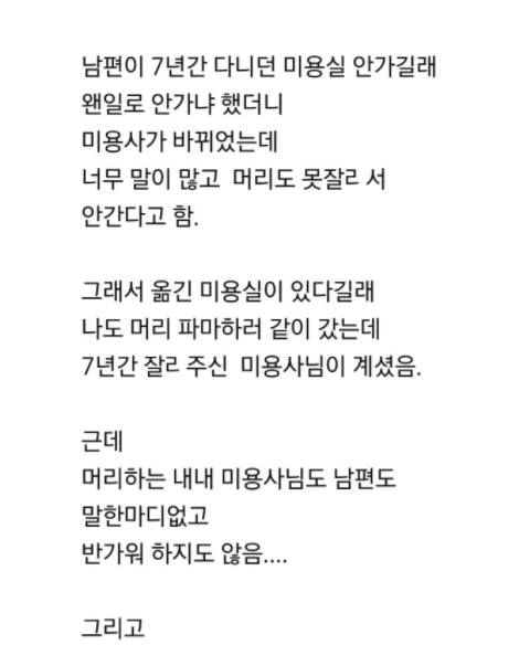 거기에 마지막 샴푸할 때 정말 씨게?? 시원하게 해주는 미용사가 있다면 금상첨화임
