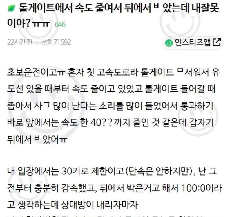 리와인드뉴스톨게이트에서 속도 줄여서 뒤에서 ㅂ았는데 내잘못이야?ㅠㅠ위키뉴스 기자입력북마크공유가글자크기프린트댓글 톨게이트에서 속도 줄여서 뒤에서 ㅂ았는데 내잘못이야?ㅠㅠ 위키뉴스 기자[email protected]카카오톡페이스북트위터밴드URL복사