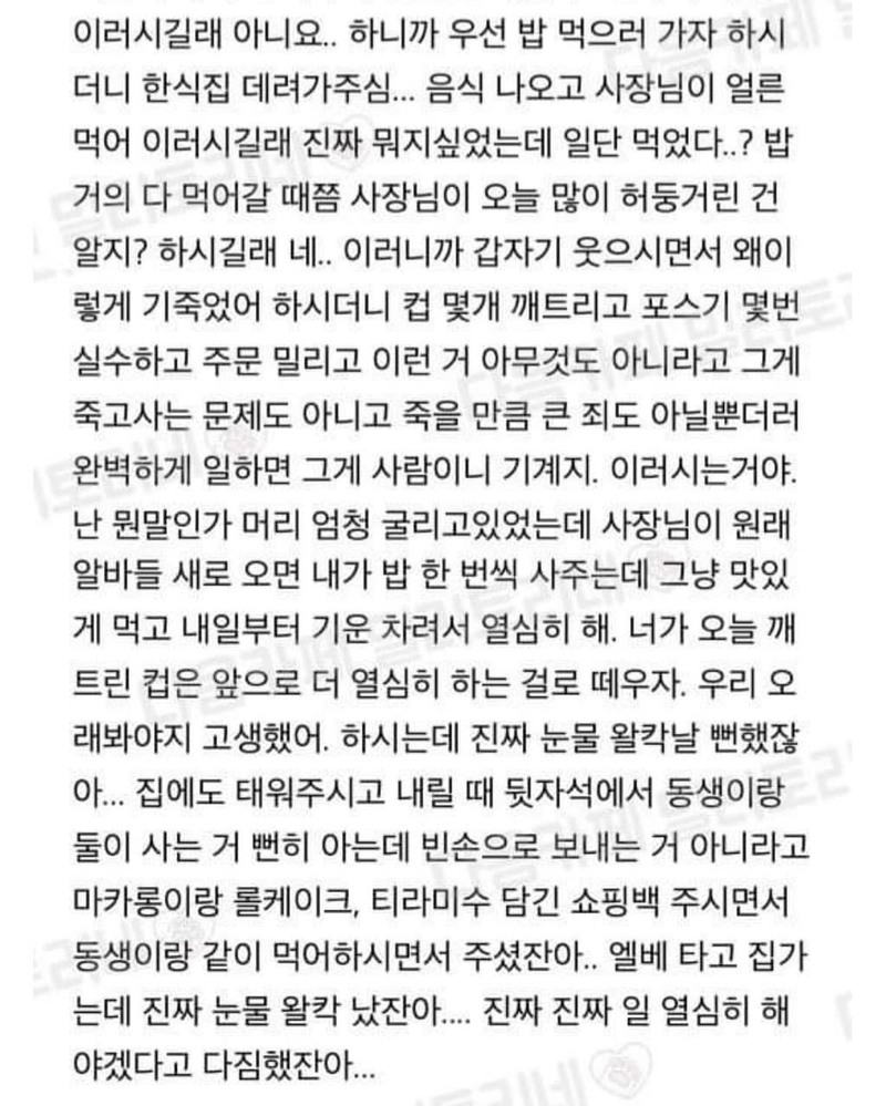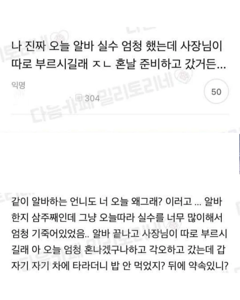 유머나 오늘 알바 실수 엄청 했는데 사장님이 따로부르시길래 혼날 준비 하고 갔거든..위키뉴스 기자입력북마크공유가글자크기프린트댓글나 진짜 오늘 알바 실수 엄청 했는데 사장님이 따로 부르시길래 ㅈㄴ 혼날 준비하고 갔거든... 위키뉴스 기자[email protected]카카오톡페이스북트위터밴드URL복사