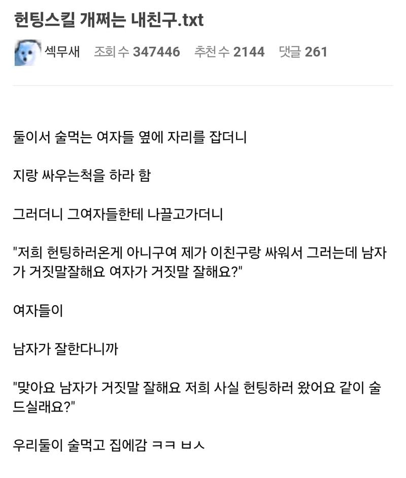 헌팅스킬 개쩌는 내 친구 ㄷㄷ