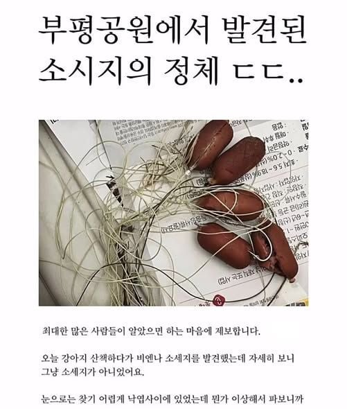 부평공원에서 발견된 소시지의 정체 ㄷㄷ....