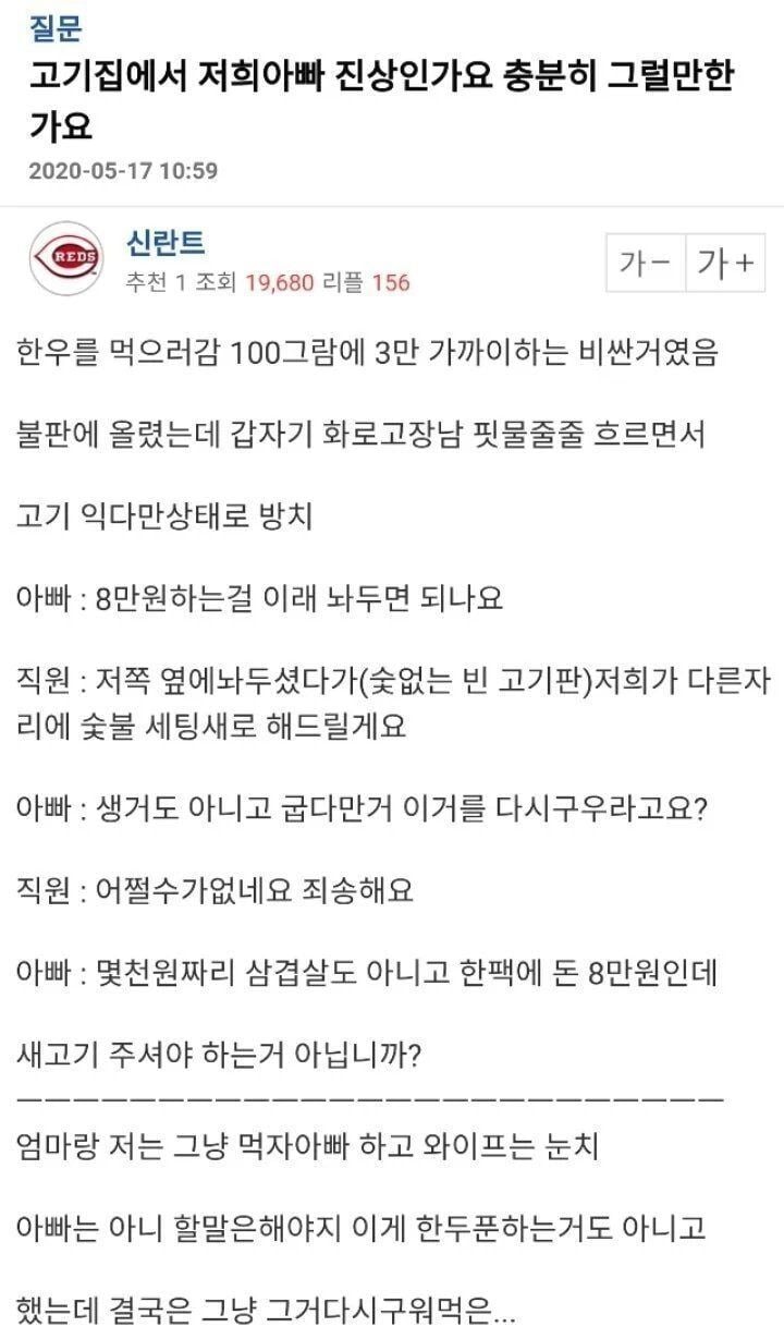 고기집에서 저희아빠 진상인가요? 충분히 그럴만한가요?