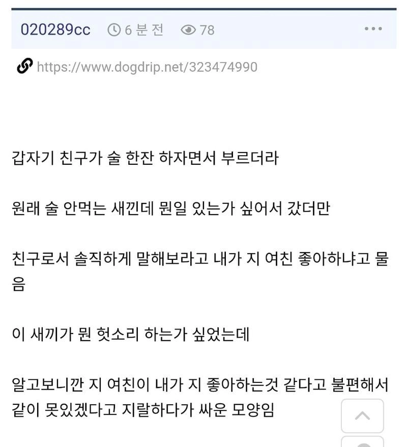 친구가 나때문에 자기여자친구랑 헤어졌대
