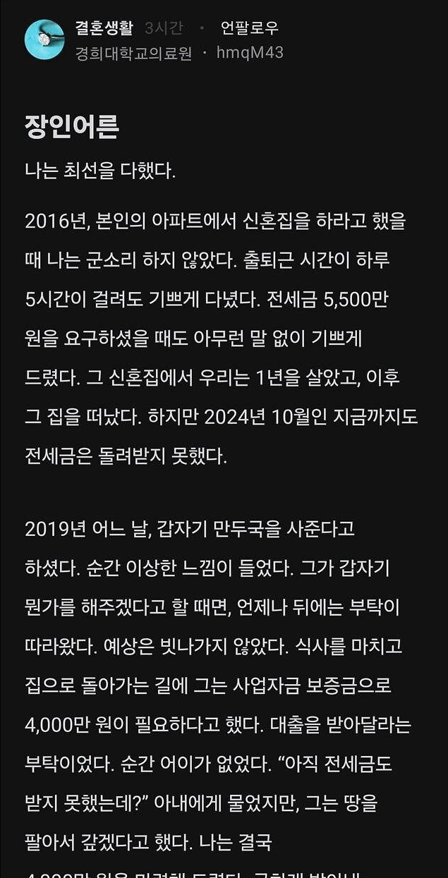 유머장인어른에게 4천만원을 대출 해준 사위위키뉴스 기자입력북마크공유가글자크기프린트댓글장인어른에게 4천만원을 대출 해준 사위위키뉴스 기자[email protected]카카오톡페이스북트위터밴드URL복사