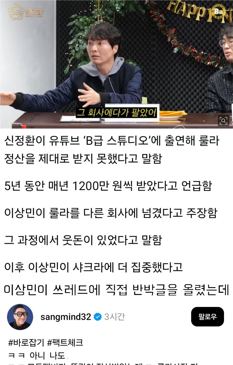 유머신정환의 이상민 저격에 이상민 반박글위키뉴스 기자입력북마크공유가글자크기프린트댓글 신정환의 이상민 저격에 이상민 반박글 위키뉴스 기자[email protected]카카오톡페이스북트위터밴드URL복사