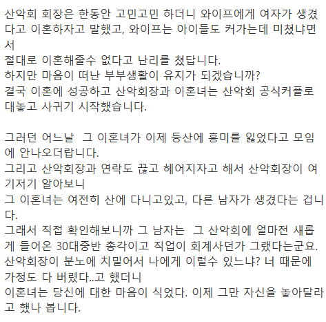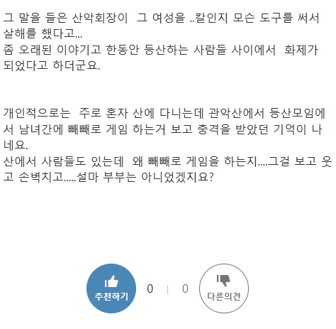 유머산악회 불ㄹ 커플의 소름돋는 결말위키뉴스 기자입력북마크공유가글자크기프린트댓글산악회 불륜 커플의 소름돋는 결말 위키뉴스 기자[email protected]카카오톡페이스북트위터밴드URL복사