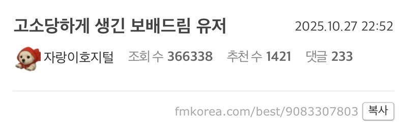 유머고소당하게 생긴 보배드림 유저위키뉴스 기자입력북마크공유가글자크기프린트댓글고소당하게 생긴 보배드림 유저 ㄷㄷ 위키뉴스 기자[email protected]카카오톡페이스북트위터밴드URL복사