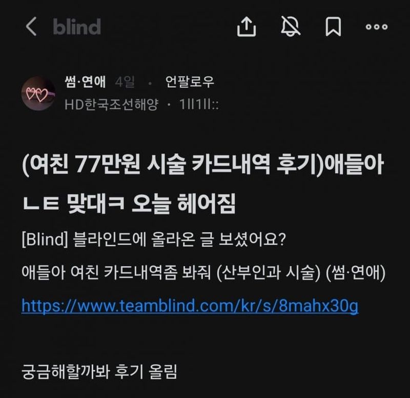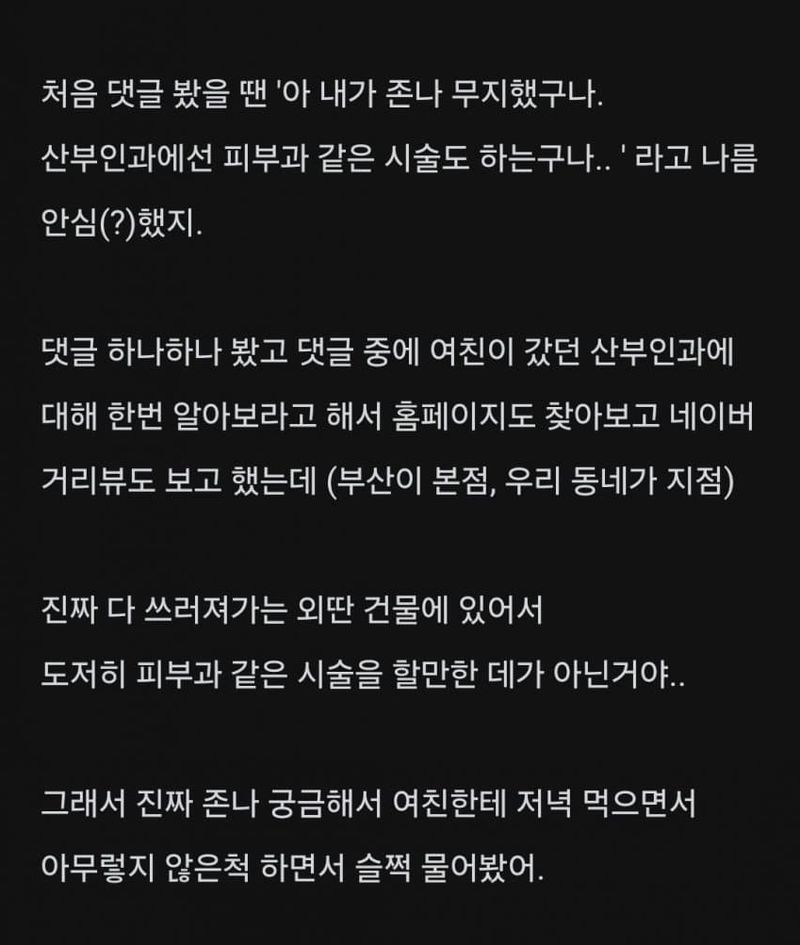 유머여친의 산부인과 내역... 이거 ㄴ태 ㅁ맞아? (+후기 +결말)위키뉴스 기자입력북마크공유가글자크기프린트댓글여친의 산부인과 내역 이거 ㄴ태 맞아? +후기 결말 위키뉴스 기자[email protected]카카오톡페이스북트위터밴드URL복사