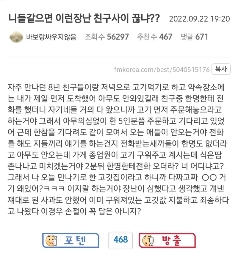 리와인드뉴스약속장소 엉뚱한 고깃집으로 알려준 8년지기 친구들위키뉴스 기자입력북마크공유가글자크기프린트댓글 약속장소 엉뚱한 고깃집으로 알려준 8년지기 친구들 위키뉴스 기자[email protected]카카오톡페이스북트위터밴드URL복사