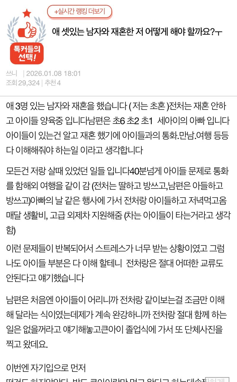 유머애 셋있는 남자와 재혼한 저 어떻게 해야 할까요?위키뉴스 기자입력북마크공유가글자크기프린트댓글애 셋있는 남자와 재혼한 저 어떻게 해야 할까요? 위키뉴스 기자[email protected]카카오톡페이스북트위터밴드URL복사