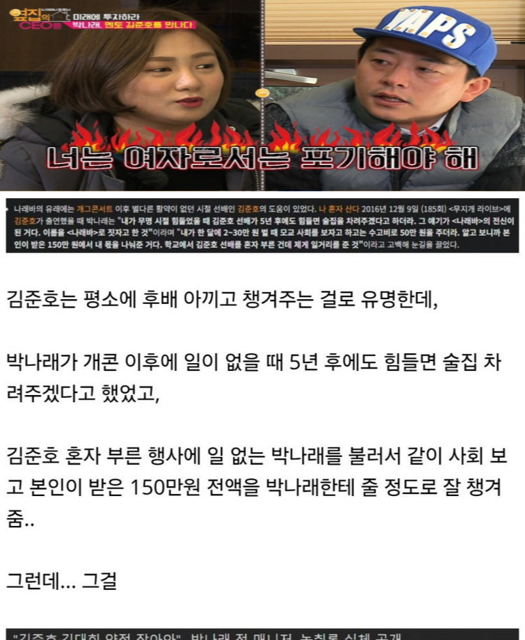 유머박나래) 김준호에 대한 공격이 더 논란이 되는 이유위키뉴스 기자입력북마크공유가글자크기프린트댓글박나래) 김준호에 대한 공격이 더 논란이 되는 이유위키뉴스 기자[email protected]카카오톡페이스북트위터밴드URL복사