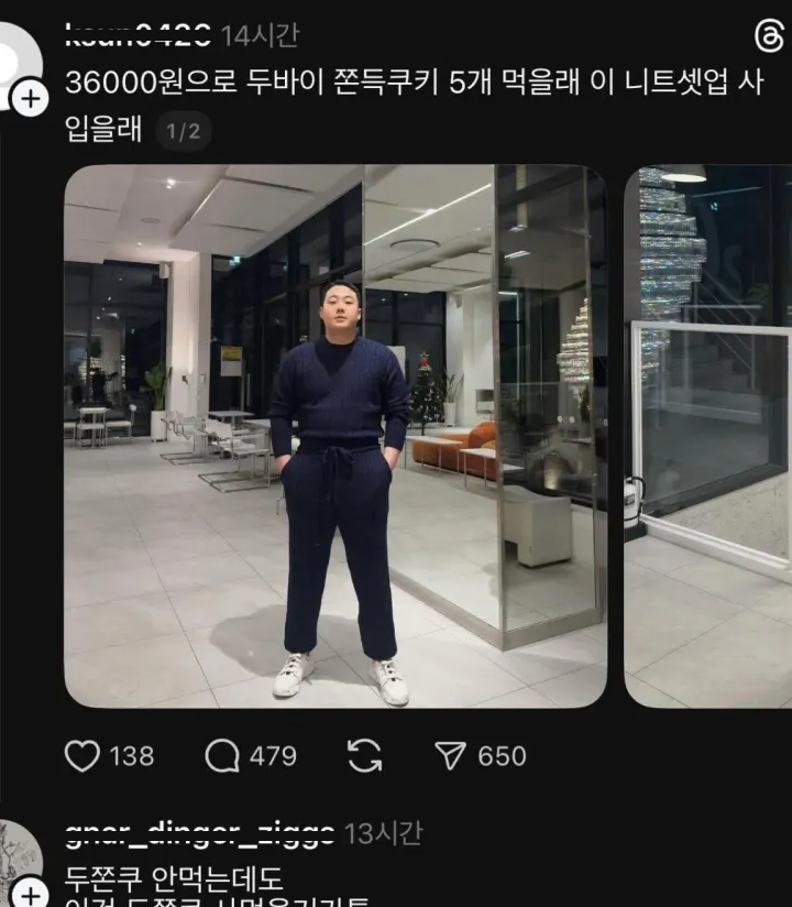 유머3만6천원으로 두쫀쿠 5개 먹을래 이 니트셋업 사 입을래위키뉴스 기자입력북마크공유가글자크기프린트댓글3만6천원으로 두쫀쿠 5개 먹을래 이 니트셋업 사 입을래 위키뉴스 기자[email protected]카카오톡페이스북트위터밴드URL복사