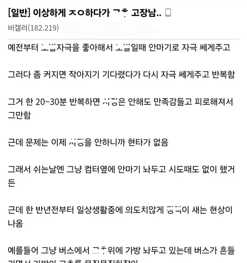 유머19) 이상하게 ㅈ위행위를 하다가 ㄱㅊ가 고장이 나버린 디시인위키뉴스 기자입력북마크공유가글자크기프린트댓글원본 만약 고추에도 수도꼭지를 달수가 있다면... 위키뉴스 기자[email protected]카카오톡페이스북트위터밴드URL복사