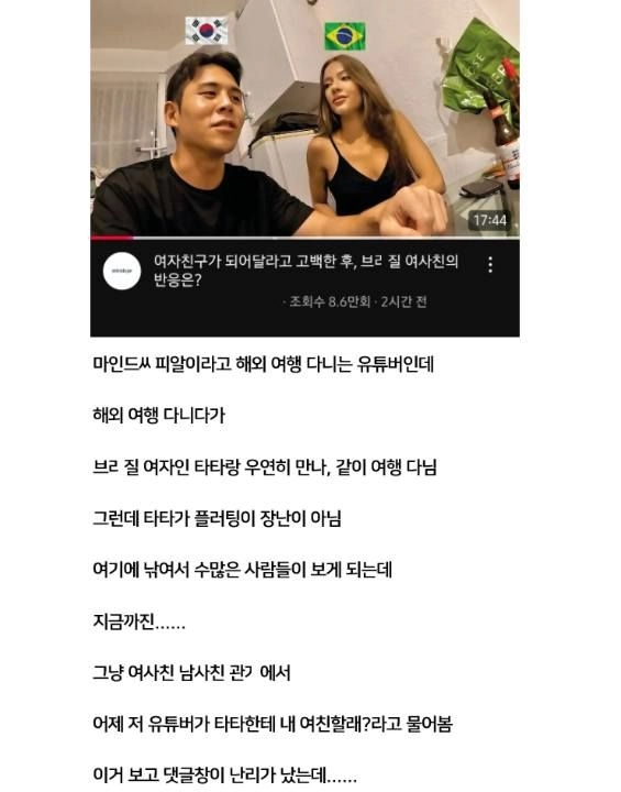 어제 저 유튜버가 타타한테 내 여친할래?라고 물어봄