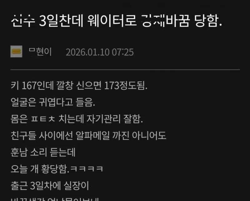 유머호ㅃr 취직한 167 키작남위키뉴스 기자입력북마크공유가글자크기프린트댓글호ㅃr 취직한 167 키작남 키도 키인데 ㄹㅇ 글에서 찐티 나노위키뉴스 기자[email protected]카카오톡페이스북트위터밴드URL복사