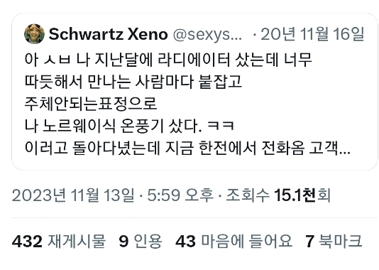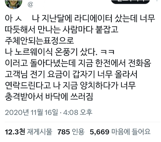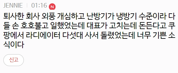 리와인드뉴스나 지난달에 라디에이터 샀는데 너무 따듯해서ㄷㄷ위키뉴스 기자입력북마크공유가글자크기프린트댓글 나 지난달에 라디에이터 샀는데 너무 따듯해서ㄷㄷ 위키뉴스 기자[email protected]카카오톡페이스북트위터밴드URL복사