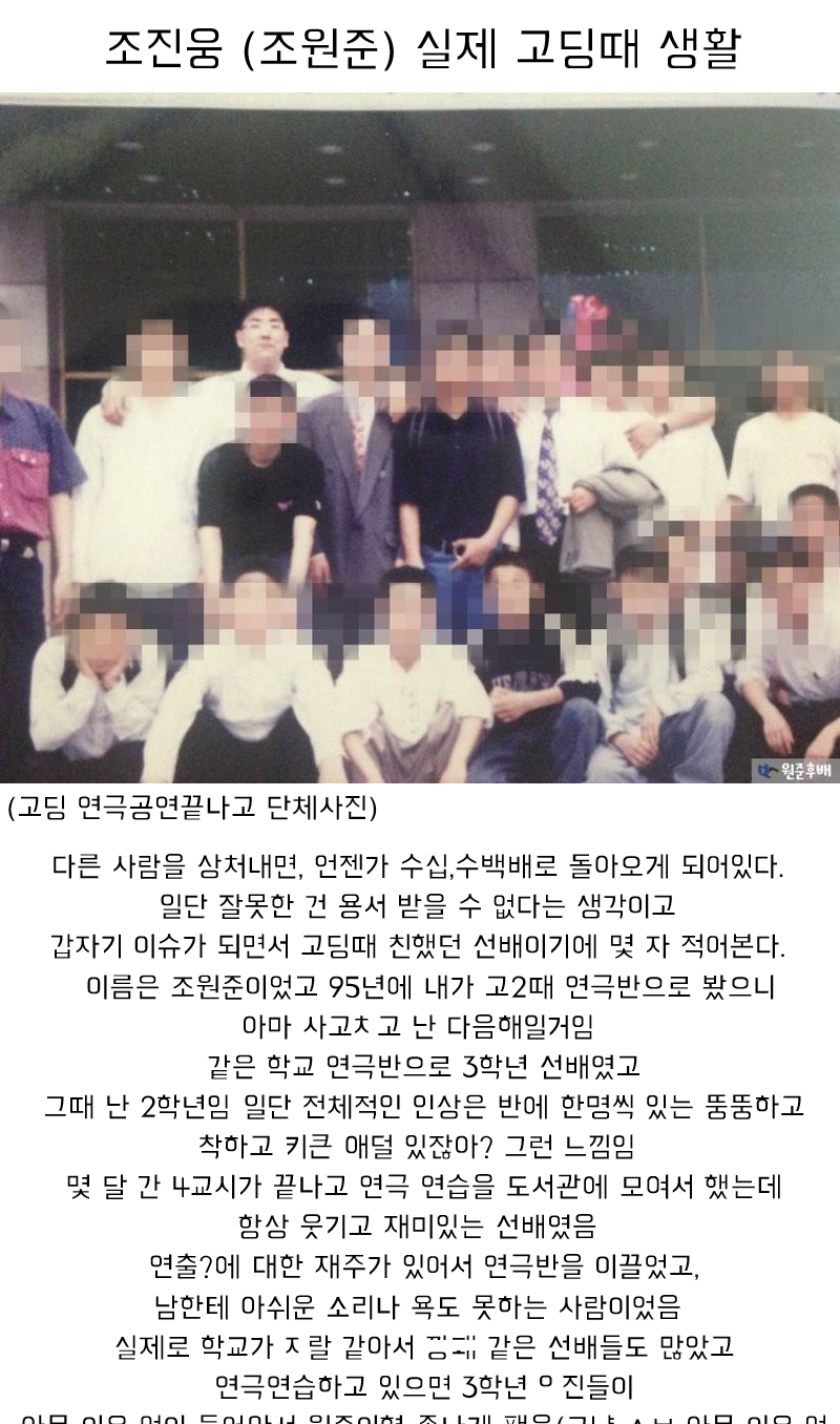 이름은 조원준이었고 95년에 내가 고2때 연극반으로 봤으니 아마 사고치고 난 다음해일거임